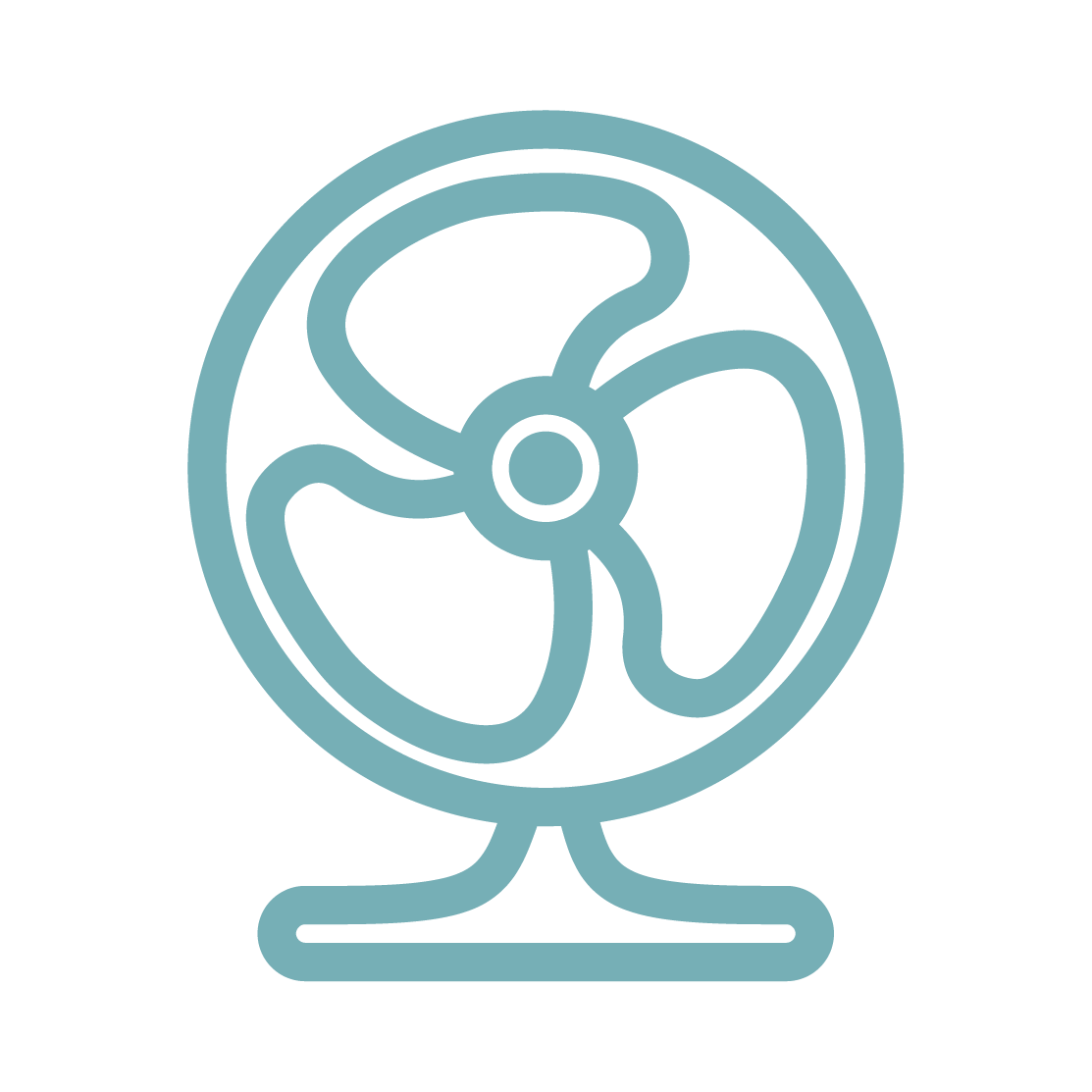 The home is equipped with air conditioning and additional fans to ensure a consistently comfortable indoor climate.